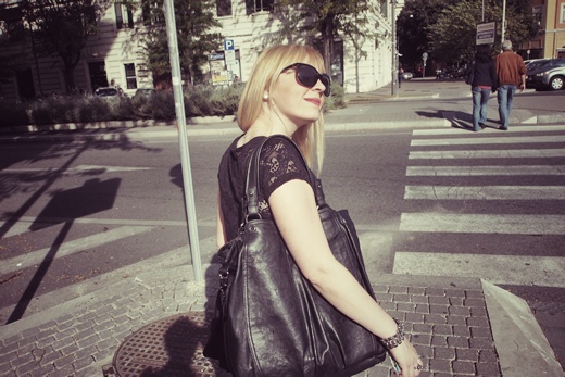 On this occasion I chose a simple outfit composed by a black tunic top macrame Pull & Bear, skinny jeans Kate London and black slippers with studs Gold & Gold. Accessories: a black handbag by Segue, a ring with a rose Bijou Brigitte, a bracelet with chain and a ring with zodiac sign (Leo, my sign!) H & M.