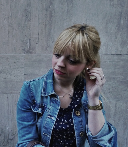 Per questa passeggiata nel centro della capitale ho scelto un vestitino blu disegnato Pimkie, delle calze avorio con parigine Calzedonia e un giacchetto jeans Bershka. Come scarpe ho scelto un paio di derby marroni Pull&Bear mentre per gli accessori una shopping bag marrone Segue, degli occhiali Six, un anello oro con pietra marrone H&M e un bracciale Promod.