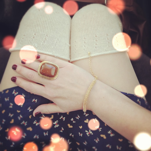 For this walk in the center of the city I chose a blue dress designed Pimkie, ivory socks with Parisian Calzedonia, jacket jeans Bershka. I choose a pair of brown derby shoes Pull & Bear, as accessories a brown shopping bag, sunglasses Six, a gold ring with brown stone H&M and a bracelet Promod.