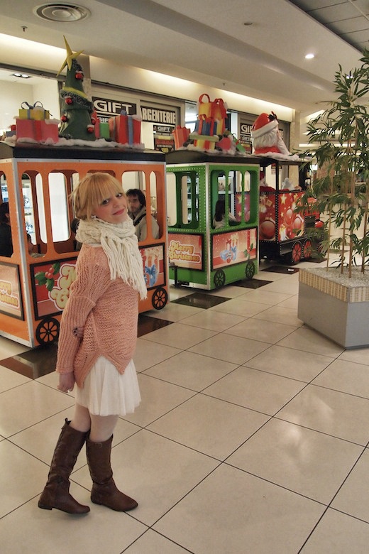 Christmas is near and for me it’s time for the first Christmas shopping and I started to “explore” obviously in the mall close to my home!For this walk in the mall I chose a soft pink sweater with gold threads bought at the store Alice Moda Donna in Arzano (Na), a powder tulle skirt Bershka, Calzedonia cream socks and a thick wool scarf of the same color , gift from last Christmas. Brown boots Bershka and a ring with rabbit Accessorize purchased during the opening and silver rings Pimkie. It is not really a Christmas look but yesterday I felt very “cupcake”!