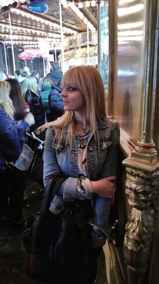 Per questa visita alla Befana di Piazza Navona ho scelto una felpa grigia con gli ormai immancabili moustaches stavolta di Zara, una gonna nera a tubino con volant Zara e un giacchetto jeans Bershka. Le scarpe sono i desideratissimi stivaletti bassi neri con borchie sul retro Stradivarius e come accessori una importante collana gioiello di H&M.