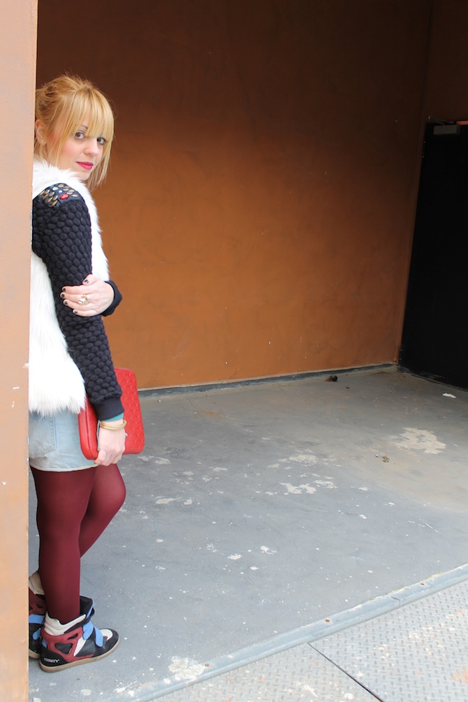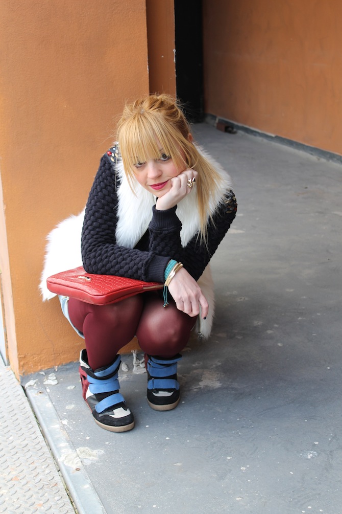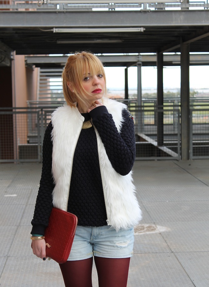 Due giorni fa il gelido vento di inizio Febbraio mi ha permesso di indossare il mio caldissimo maglione blu di Pull&Bear acquistato tempo fa.L’ho abbinato ad un gilet di pelliccia ecologica preso in saldo qualche settimana fa ed a sostituire la classica borsa un fashion case per contenere il nostro prezioso iPad.