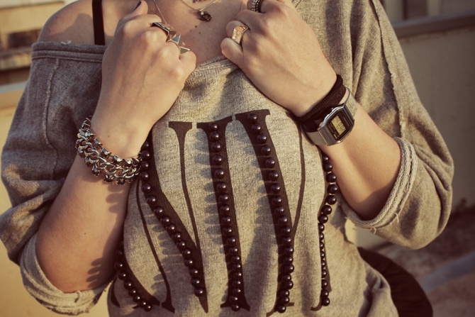 I am proud to present a total look from Aniye By, elegant and aggressive that will take you in these cold spring evenings. Aniye By is a brand that makes us travel between oversized sweaters and grunge look also worn by Ambra Angiolini that can emphasize even more their versatile and suitable style for a girl who likes to dare bluntly. My outfit is part of the exuberance soul of Aniye By, a macrosize sweatshirt with a rock n’roll flavor and a flouncy skirts that nods to the gypsy style to which I accompanied eccentric accessories to enhance the contrast of this look. Aniye By is a brand that moves 360° among the must have of this season and that will satisfy your desires for this spring/summer season. Therefore I strongly recommend you visit their official website and facebook page to be able to immerse yourself in its collection.