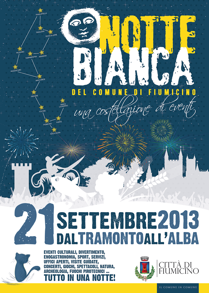 Il comune di Fiumicino sabato 21 settembre si appresta a festeggiare la sua prima notte bianca con eventi di cultura, sport, musica, prodotti tipici, concerti, spettacoli e tantissimi altri.