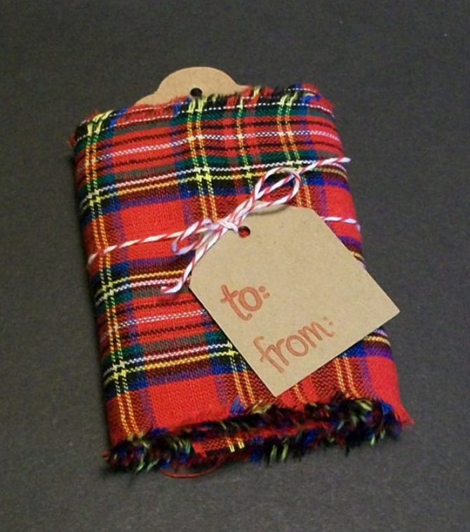 Ampio spazio quindi, al posto della superata carta da regalo, alla classica carta da pacchi marrone, a tovaglioli (anche di carta) colorati o tinta unita, ad avanzi di stoffa, magari in tartan per essere in linea con il mood fashion del periodo o addirittura camice che non indossate più; per le decorazioni bastoncini di zucchero o cannella, passamanerie, stickers colorati di varie forme, spago, campanellini o piccole decorazioni rubate dagli alberi di natale, pigne, rami, foglie recuperate per strada ma anche fiori secchi profumati o foglie di alloro.